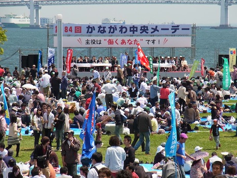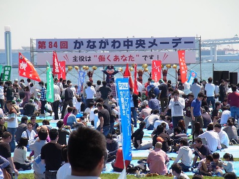 4月27日(土)に横浜臨港パークで行なわれた、かながわ中央メーデーに、情報労連は200名で参加しました。