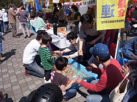情報労連としては、NTT労組グル連協のフレージの協力を得て「スーパーボールすくい」「ヨーヨー釣り」「玉こんにゃく」「フェアートレードコーヒー」に加え、石巻の復興支援として海産加工品を販売しました。